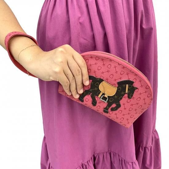 カッティングワークで馬を表現したポーチ。